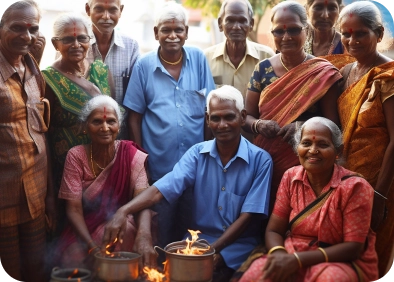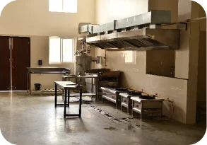 A kitchen is built with modernized cooking equipment to cook food for 200 people. Staffed by experienced cooks and kitchen assistants. This kitchen prepares and serves nutritious meals to the resident elderly in a clean and hygienic manner.